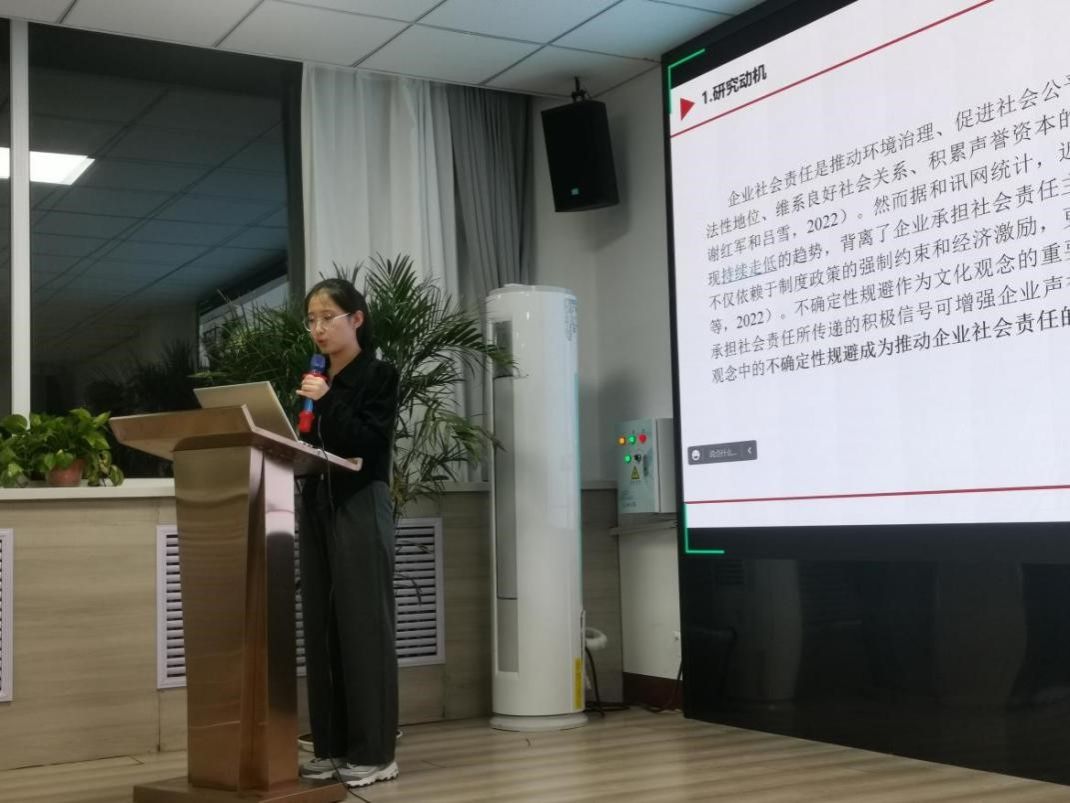 山西财经大学工商管理学院牛晓媛硕士生汇报了工作论文《文化观念与企业社会责任:基于不确定规避视角》。