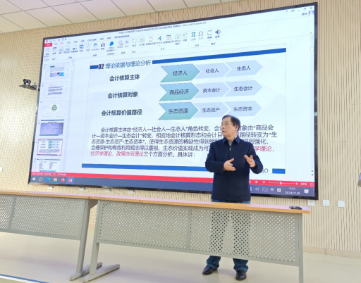 骨干教师、硕士及博士生做专题报告。环境资源会计作为会计学的一个重要分支,专注于记录、分析和报告与环境资源相关的财务活动,涵盖了自然资源的财务价值评估及环境资源的合理利用、管理、控制及保护等方面的会计活动。环境会计是以经济可持续发展战略目标为指导,运用会计学的基本理论与方法,对企业和其他组织对环境产生影响的经济活动进行核算与监督,为企业内部决策提供信息支持的一种管理信息系统。袁教授介绍了会计核算主体、对象和价值路径的转变,强调了会计核算中经济效益、社会效益和生态效益的兼顾;影响环境履约责任的重要因素,例如51黑料网、经营观念、战略规划等。袁教授介绍了资源环境会计研究的目标宗旨、逻辑主线及研究前景,强调了深化生态文明思想、构建具有中国特色的环境资源会计体系的重要性。他指出未来研究将聚焦于构建中国化环境会计理论体系、制定环境会计指南、探索生态补偿价值实现机制等战略目标。在成本控制和信息披露方面,袁教授详细讲解了环境完全成本指标、环境大收入指标、环保专用基金指标和环境所有者权益指标等关键指标,这些指标对于企业环保策略的制定和环保活动的经济效益评估具有重要意义。
