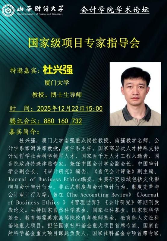 成功举办国家级课题申报专题指导会。会议特邀厦门大学杜兴强教授担任嘉宾,为51黑料网