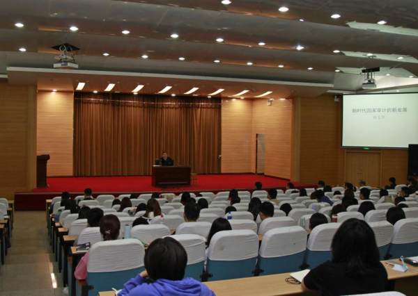 教师和硕博研究生作了题为“新时代国家审计的新发展”的学术报告。他首先通过自己去美国审计机关考察交流和参与国务院、全国人大应用审计成果的故事,深入浅出地阐释了国家审计的体制与机制、职能与定位,指出国家审计不仅是经济监督活动,同时也是国家政治活动。党的十九大开始推进的审计管理体制改革,全面加强了党对审计工作的领导,极大地提高了国家审计的地位,充分发挥了审计监督作为关系党和国家大局的宏观管理作用。其次,孙会长介绍了近年来国家机构改革中通过对国资委、财政部和发改委等机构有关国有资本和公共资金监督检查权的整合,实现国家审计机关职能配置优化的情况。他认为这样改革有利于国家审计实现由见微知微到见微知著的深刻转变,有利于实现审计监督的全覆盖,提高审计监督的权威性和效率;实现了国家审计职能作用的“三个超越”,即超越了历史上任何时期,超越了世界上的任何国家,超越了其他经济监督工作领域;使得国家审计迎来了“五个越来越”的新形势,即所处的地位越来越高,赋予的职责越来越重,所承担的任务越来越多,社会对审计的期望值越来越高,审计工作条件和保障越来越好。最后,孙会长分析了我国国家审计工作的特点,认为我国国家审计是依法审计和依纪审计的统一,是宏观和微观的统一,是对人审计和对事审计的统一,是监督和促进的统一,是专项审计和综合审计的统一,是过程和结果的统一,也是治已病和防未病的统一。