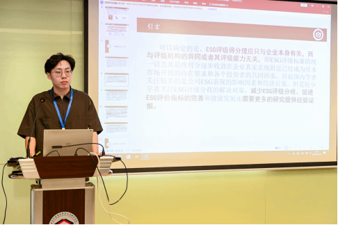 教师王东升和硕士生张钰泽汇报了他们的论文《分行业信息披露能抑制ESG评级分歧吗?——基于行业信息披露指引发布的证据》,硕士生吴彦辰报告了与导师李颖教授及合作者肖丽芳撰写的文章《ESG的收入分配效应研究:来自中国上市公司的证据》。
