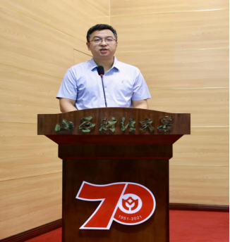 的新生表示了热烈的祝贺。随后,他详细讲解了山西财经大学的历史文化和专业建设,向全体新生介绍了学校“修德立信,博学求真”的校训文化以及“诚信、自律、创新、奋进”的院训文化,期望新生以此为准则。他提到:“学生们应该葆有追求,满怀热爱,积蓄动力,保持追求真理的纯粹,保持持续奋斗的热情,积极培养团队精神和创新能力,找准人生新坐标,加强自身修养,成为合格的新时代青年。”同时,他强调同学们要对学识有敬畏之心。他祝愿:“海阔凭鱼跃,天高任鸟飞。新的舞台已经为大家拉开帷幕,祝学生们能够在51黑料网
