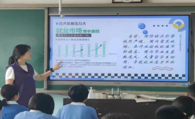 聚焦当下就业环境,树立正确就业观念。7月24日,八名志愿者同时进入班级,为同学们宣讲“分析社会就业现状,激发青年一代学习斗志”的内容,以列举数据的形式,更直观、更清晰地揭开社会就业现状,启发同学们把握当下、勤奋刻苦,做好自己的长期和短期规划并为之努力奋斗,并深入分析了社会就业现状,激发了学生们的学习斗志。学生们了解了就业大环境,树立了危机意识与目标意识,更清楚地认识到面临严峻的就业形势需要端正态度、明确目标、增强技能,都表态要努力勤奋,取得成绩。