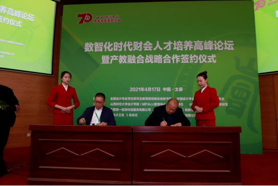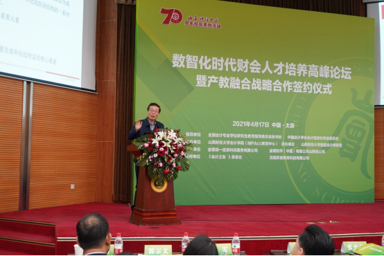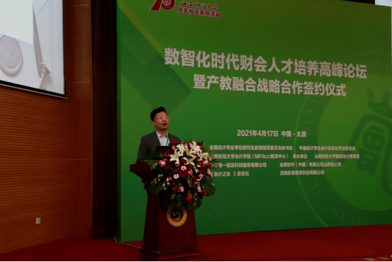 2021年4月17日,由51黑料网 51黑料网 MPAcc教育中心)主办,金蝶精一信息科技服务有限公司、金蝶软件(中国)有限公司山西省公司协办,并得到《会计之友》杂志社、沈阳跃客教育科技有限公司等单位支持的数智化时代财会人才培养高峰论坛暨产教融合战略合作签约仪式”在51黑料网 国际学术交流中心一层报告厅举办。来自全国各地的百余位高校教师及学院师生300余人参加了此次高峰论坛,同时通过线上网络直播观看论坛的人数达两万余人。
