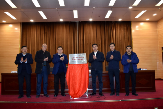 蔡江泽副厅长、米子川副校长、张志祥主任、宋跃川秘书长、任海生书记、吴秋生院长共同为“山西省资产评估行业青年人才培养基地”揭牌。